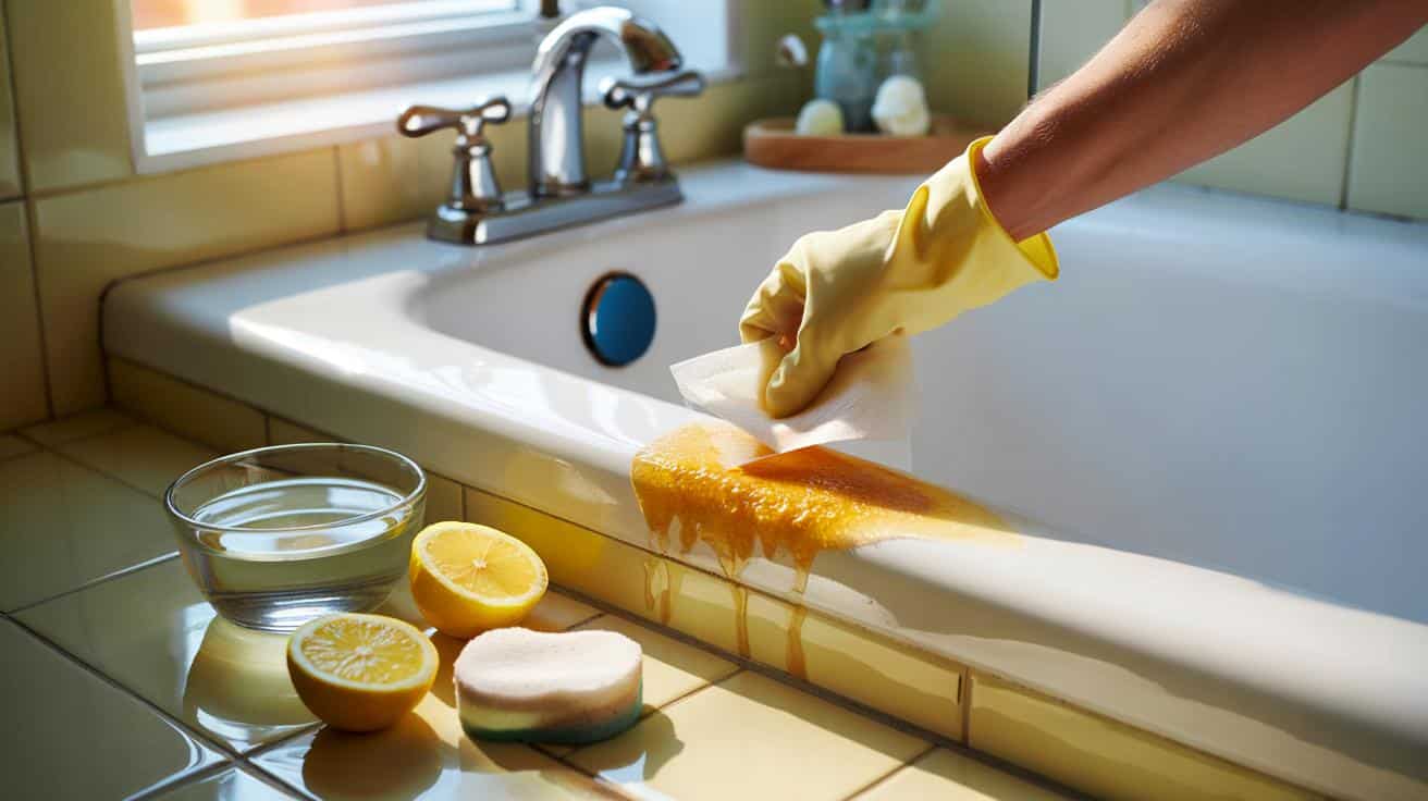 বেকিং সোডা একটি প্রাকৃতিক পরিষ্কারক, এবং লেবু দাগ কাটাতে বিশেষজ্ঞ। একসাথে, এই দুটি টাইলস থেকে ময়লা এবং হলুদ ভাব দূর করতে সাহায্য করে। বেকিং সোডা সামান্য লেবুর রসের সাথে মিশিয়ে ঘন পেস্ট তৈরি করুন। দাগযুক্ত স্থানে লাগান এবং ১০-১৫ মিনিটের জন্য রেখে দিন। তারপর, ব্রাশ দিয়ে আলতো করে ঘষুন এবং জল দিয়ে ধুয়ে ফেলুন। এতে কয়েক মিনিটের মধ্যেই হলুদ দাগ, সাবানের ময়লা এবং হালকা গ্রীস দূর হবে।